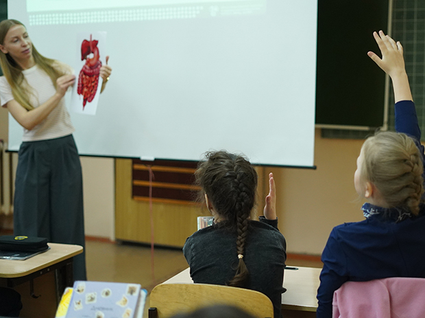 Вчера, 8 апреля, специалисты нашего Центра Надежда Лянгасова и Мария Семченко в рамках интерактивного просветительского проекта «Музей здоровья. Кировская область» рассказали учащимся двух младших классов школы № 27 о работе желудочно-кишечного тракта и здоровом питании.
